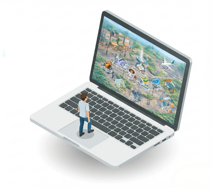 Canva Townは、操作を覚える場所ではなく、迷わないための考え方や順番に出会うための街です。ここから先は、いまのあなたの場所から歩き始められるように作られています。