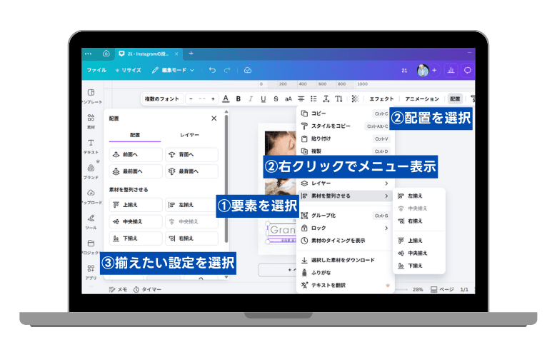 整列という言葉は、Canvaのいろいろな制作で自然に登場します。