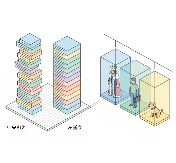 図解では、要素の整列がそのまま理解のしやすさに直結します。