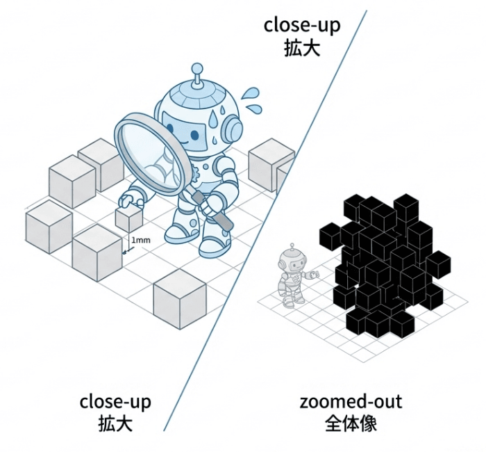 近くで整えたつもりでも、全体像が崩れていることが多いのです。
