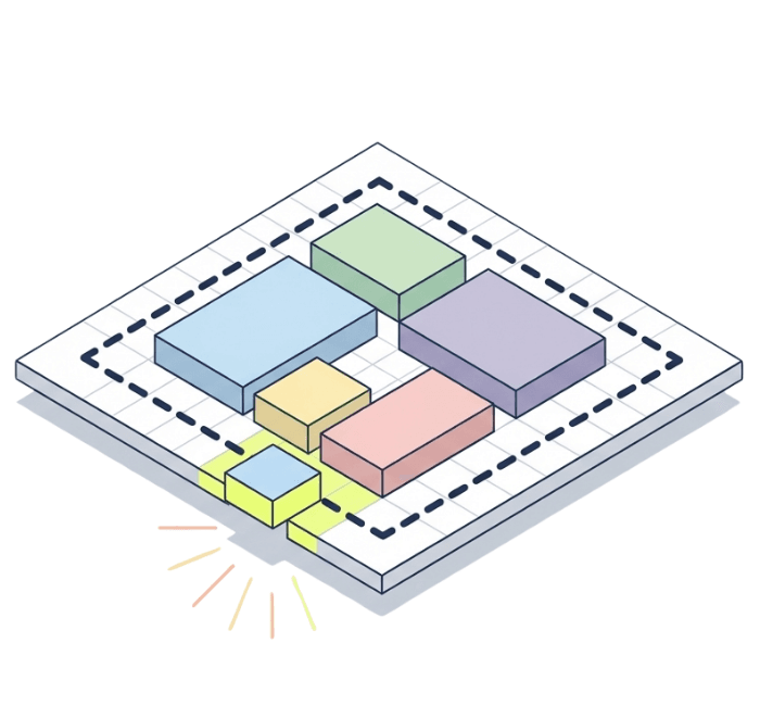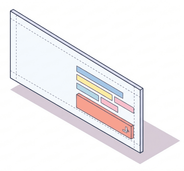 端との距離と配置のラインを同時に整え、どんなフォーマットでも迷いなくデザインを進めるための強力な基準となります。