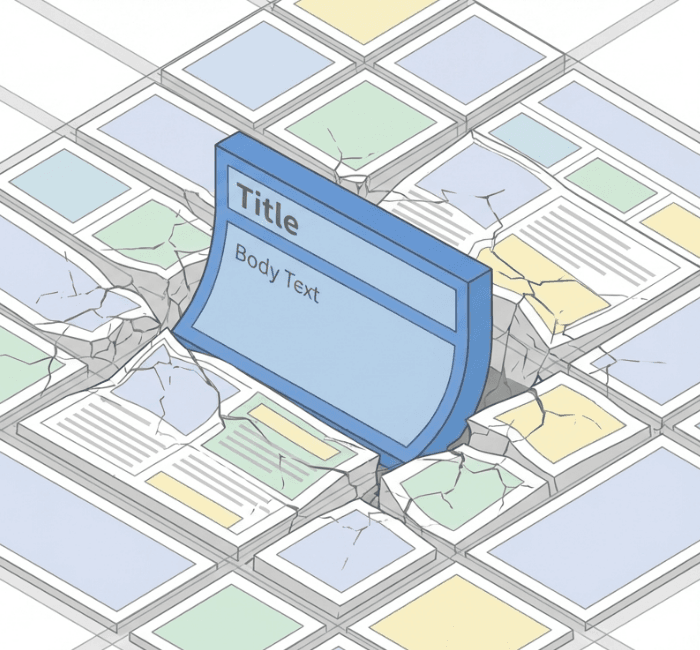 たとえば、タイトル、説明文、ボタンの3つを同じ間隔にすると、意味のまとまりが壊れ、情報が伝わりにくくなります。