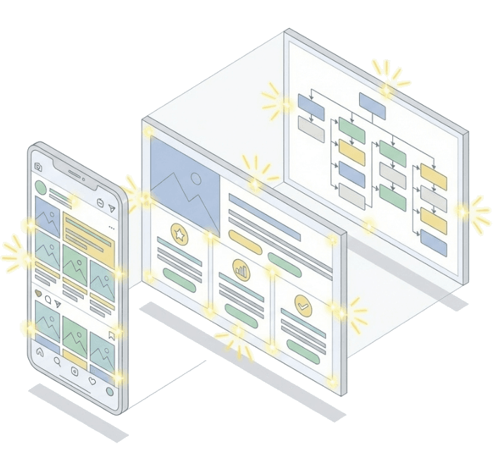 Instagram投稿では、表紙の3要素、カルーセル内の見出しブロック、比較投稿のカード配置で使います。バナーでは、商品情報や訴求ポイントの並びを整える場面で自然に出てきます。資料では、アイコンと説明、表のように見せたい情報、工程の並びなどで重要になります。図解では特に出番が多く、情報が並列なのか、階層があるのかを距離で見せるときに欠かせません。