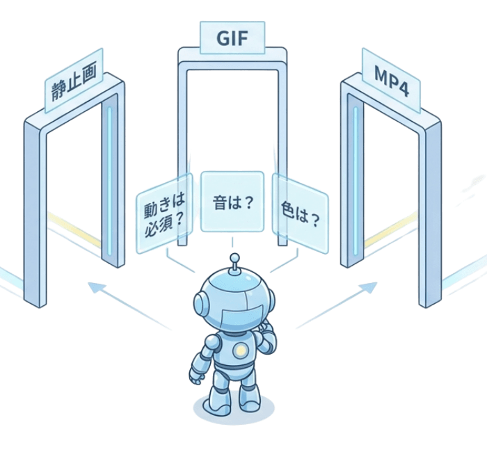 GIFを単なる動く画像と捉えるのをやめ、「音は必要か」「短い動きで足りるか」で選ぶ視点を持ちましょう。