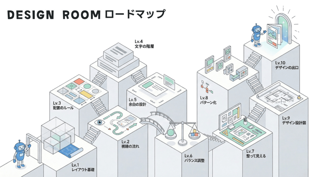 DESIGN ROOMのLvは、デザインの上手さや完成度を表すものではなく、ここでのLvは、情報を見る視点が増えていく順番です。