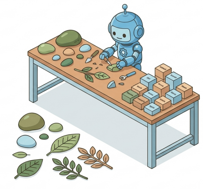 手元に豊かな材料が揃うと、苦しかった「書く作業」は、パーツを組み合わせて楽しむ「遊ぶ作業」へと変わっていきます。