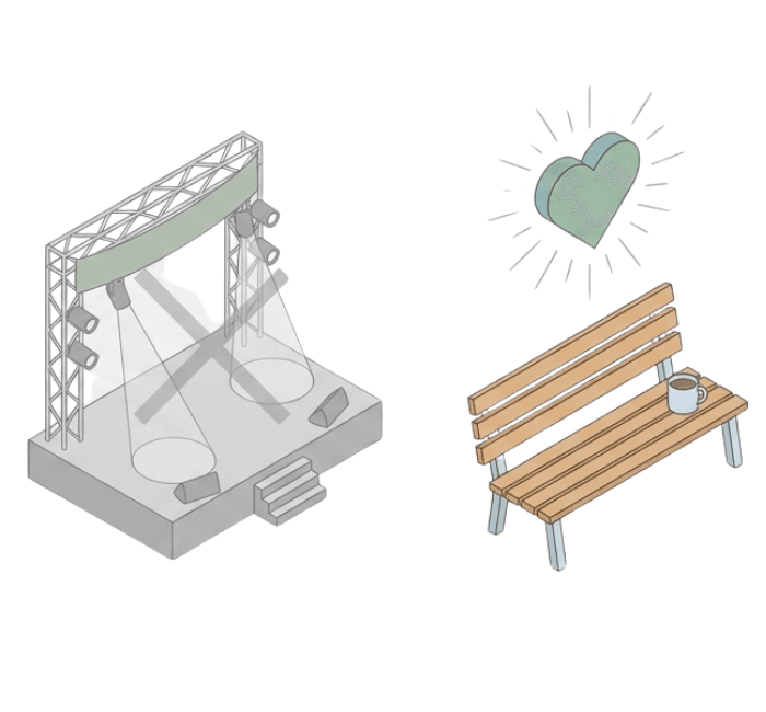 わかりやすい苦労話、きれいにまとまる成功談、共感されやすそうな転機。もちろんそれ自体が悪いわけではありません。けれど、それが自分の本音と少しずれていると、言葉は整っていても温度が合わなくなります。