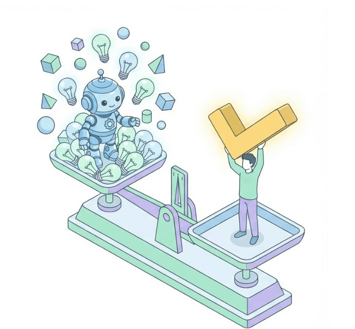 AIに頼りすぎると自分の意思が消え、逆にAIを遠ざけると作業の負担に押し潰されます。