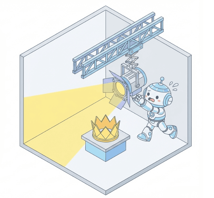 光の当たり方が意図せず変わり、視線誘導が壊れる原因となります。