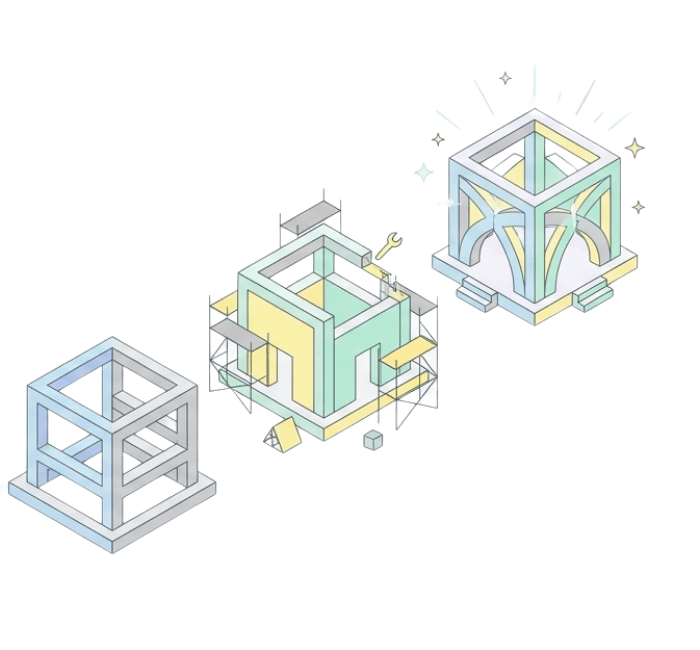 テンプレの枠をガチガチに作り込みすぎるのも危険です。それは差し替えが効かない、柔軟性のないLP(ランディングページ)の雛形を作るようなものです。